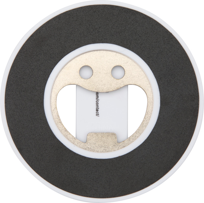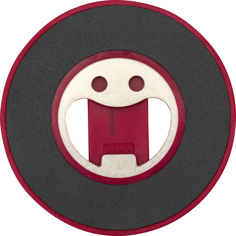 This Ain magnetic phone stand made from recycled plastic provides practical utility for promotional efforts. It attaches magnetically to iPhones 12 and newer, acting as a phone stand. A handy bottle opener is also included for extra convenience.