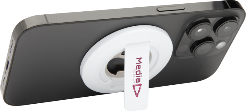This Ain recycled plastic magnetic phone stand offers practical utility for general promotional efforts, serving as a useful accessory for many recipients.