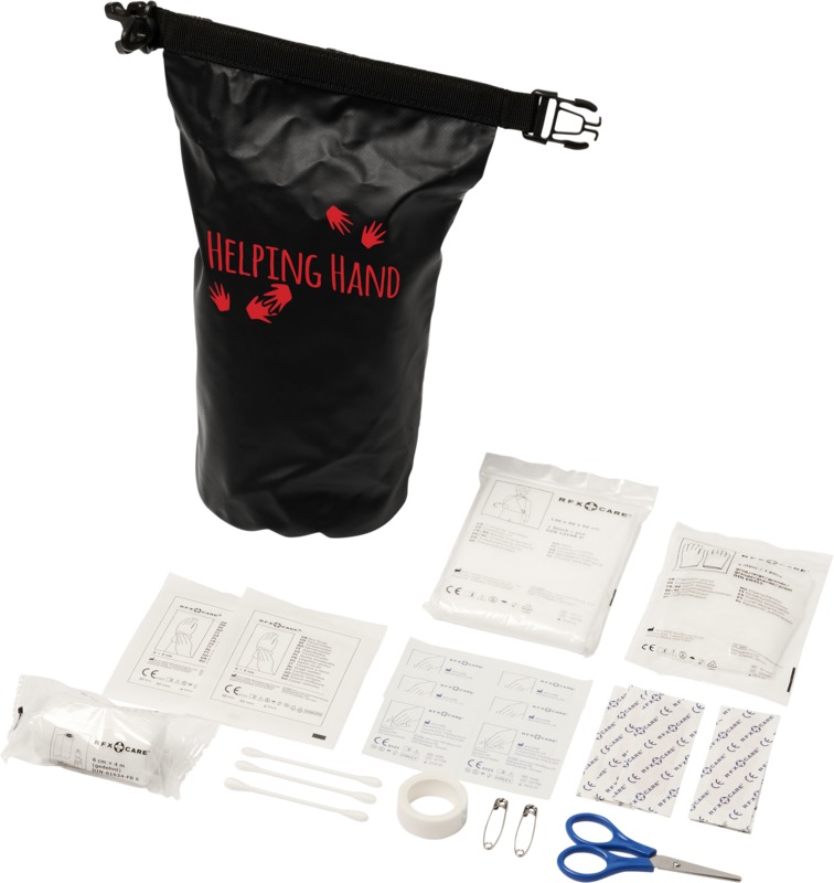 Keep essential first aid items safe and dry with the Alexander 30-piece waterproof bag. Made from strong tarpaulin, it contains 30 supplies, including scissors and bandages. This bag is a practical choice for general promotional campaigns from Alexander.