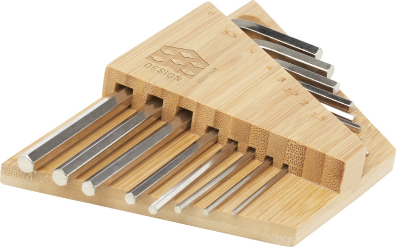 This Allen bamboo hex key tool set makes a practical general promotional item for a wide range of recipients.