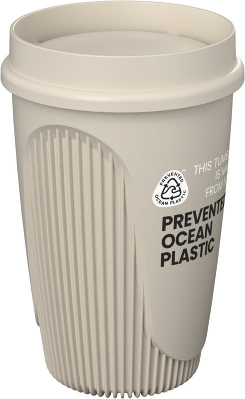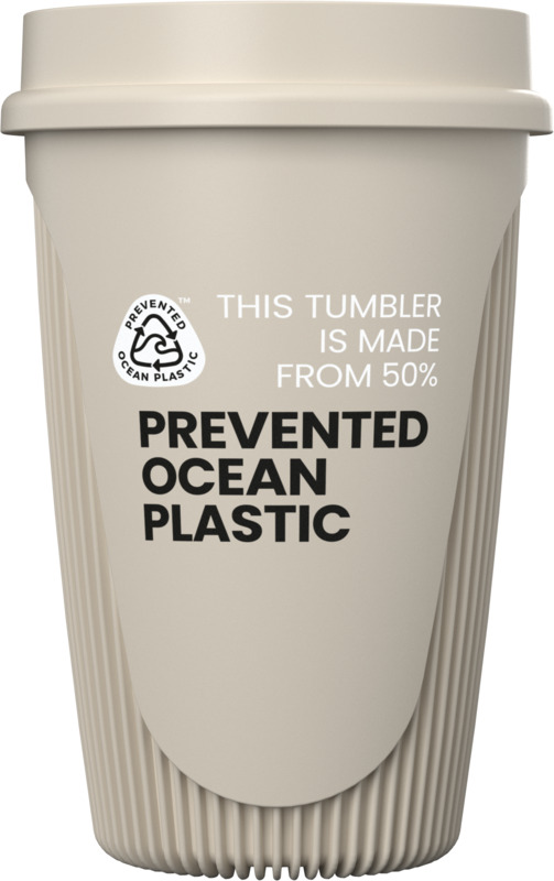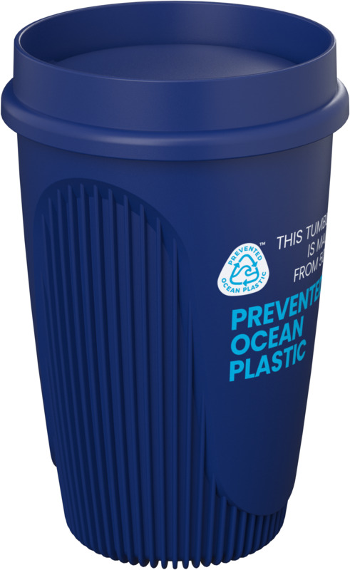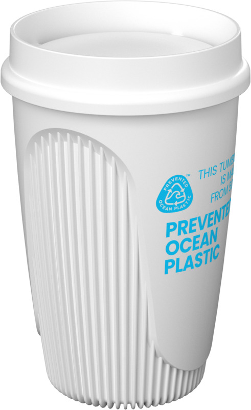 This Alto POP 350 ml tumbler supports environmental efforts, using 50% Prevented Ocean Plastic. Each tumbler reuses ten plastic cups. Its 360° lid allows comfortable sipping from any angle, making it a practical item for any promotional campaign or for staff use.