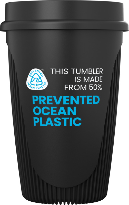 • Made with 50% Prevented Ocean Plastic, each tumbler reuses 10 disposable plastic cups collected from Asia.