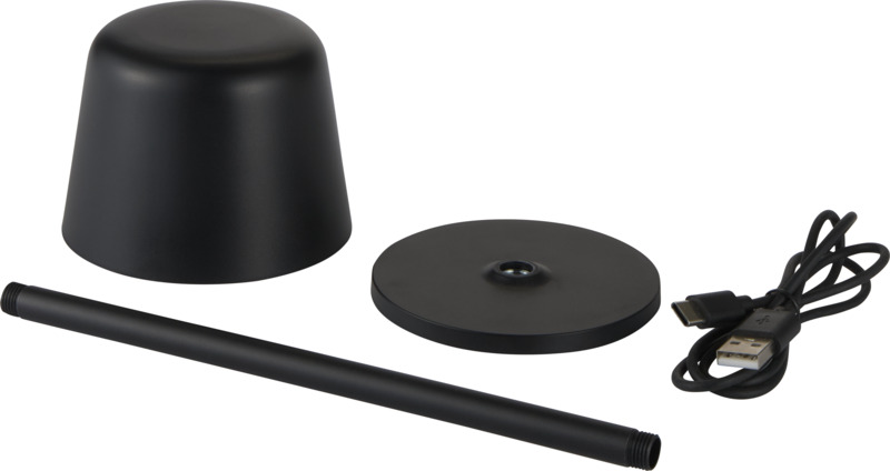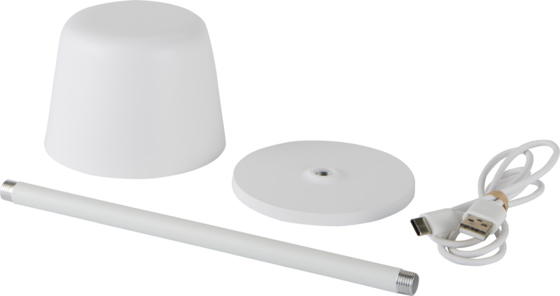 The Alya rechargeable table lamp provides adaptable lighting with three dimmable modes: white, warm, and mixed. It offers cordless convenience using a 1200 mAh rechargeable battery. This practical lamp is ideal for branding projects.