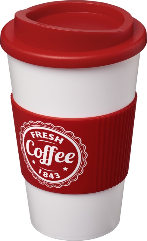 This Americano® 350 ml insulated tumbler with grip is a practical choice for promotional campaigns, offering a useful item for everyday use.