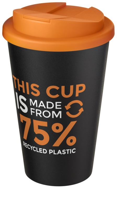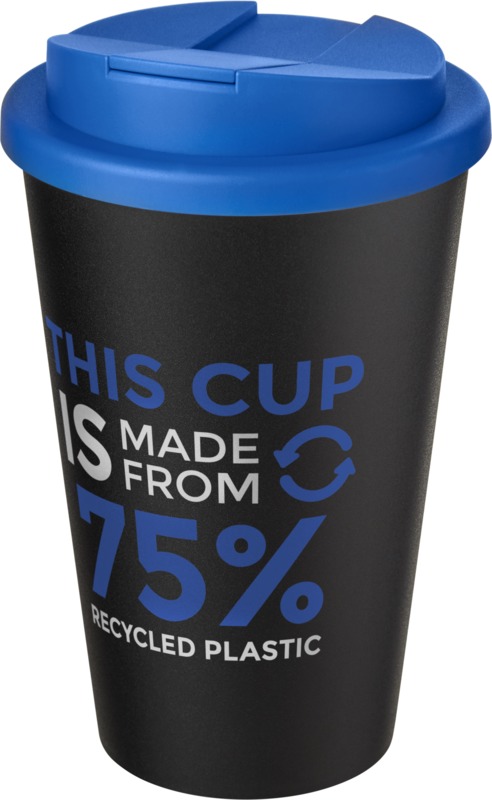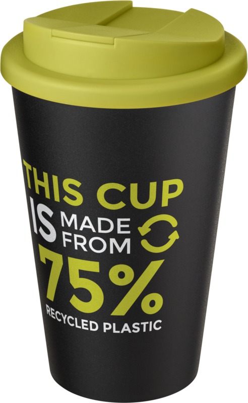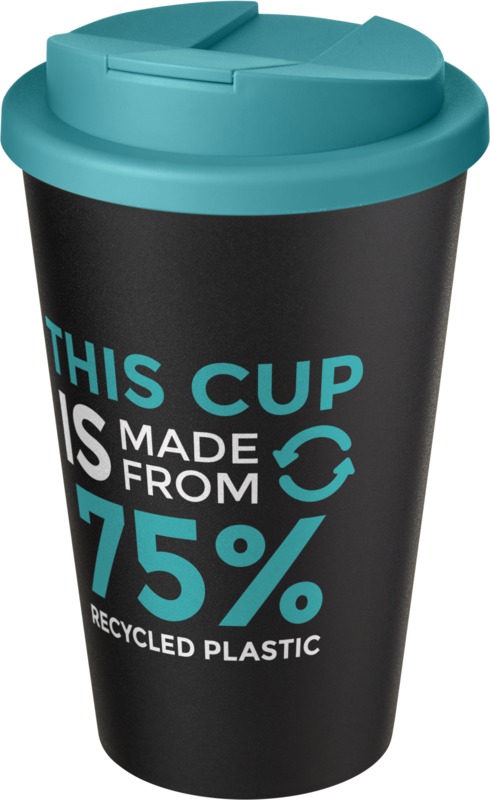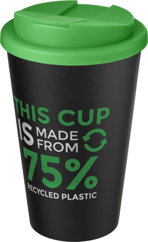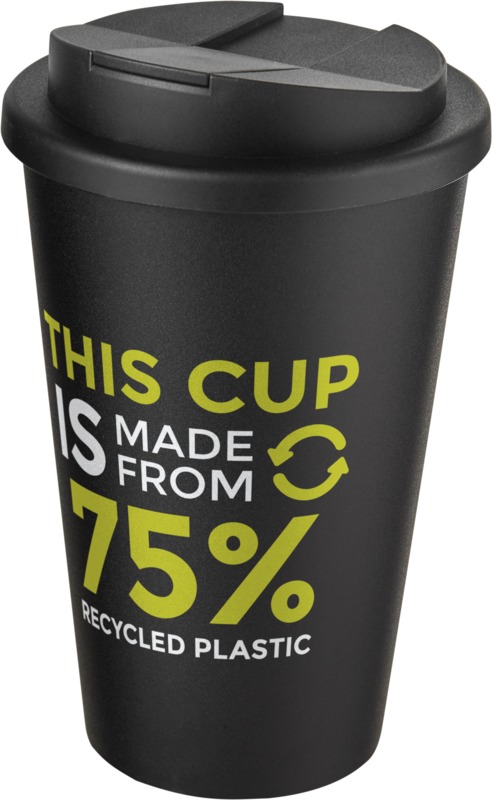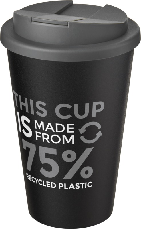 • Made from 75% recycled plastic, this double-walled tumbler has a 350 ml volume capacity and a black inner layer.