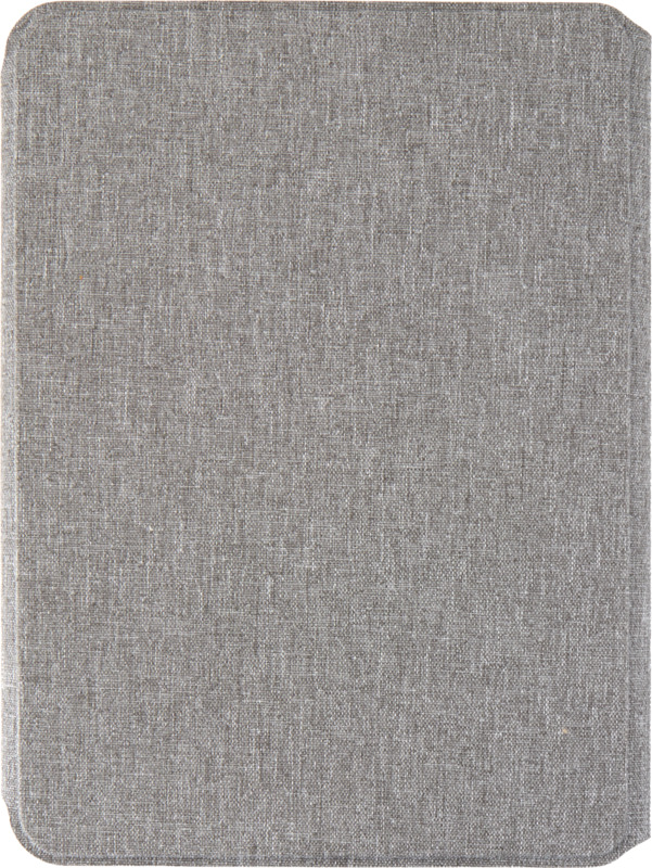 • It has a grey hard cover with rounded corners and precision welded construction, secured by a magnetic closure with a walnut wood detail.