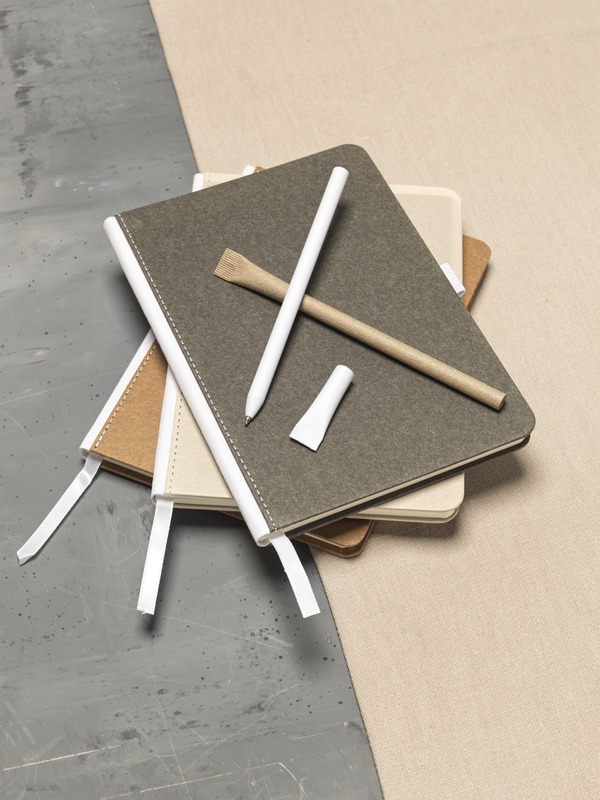 The Asilah recycled paper ballpoint pen is an environmentally aware choice for everyday use. Its body is made from recycled paper, showing a commitment to sustainable practices. It writes in blue ink and has a protective cap. This pen is a good item for general promotional campaigns.