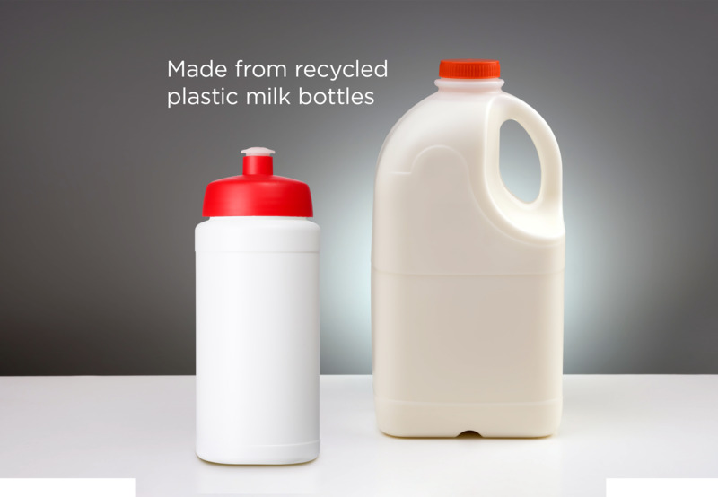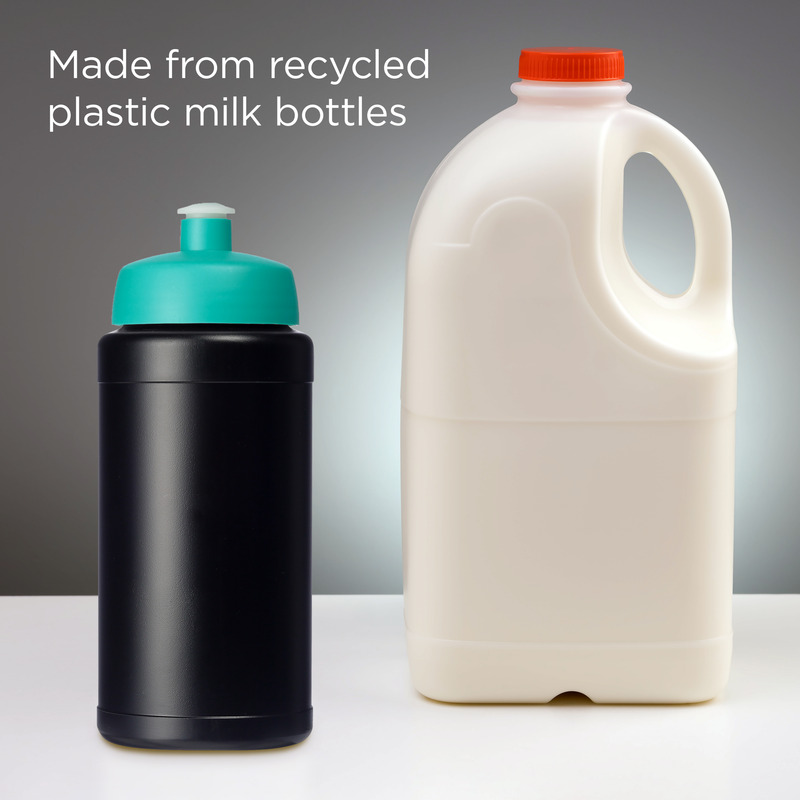• This single wall sport bottle is made from recycled plastic milk bottles, offering a sustainable choice.