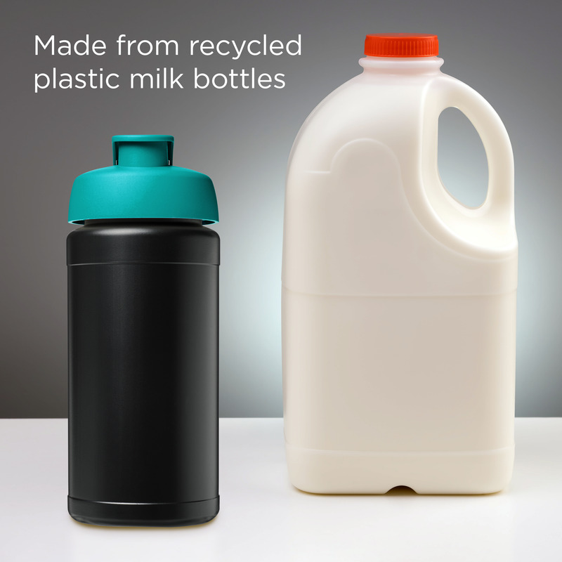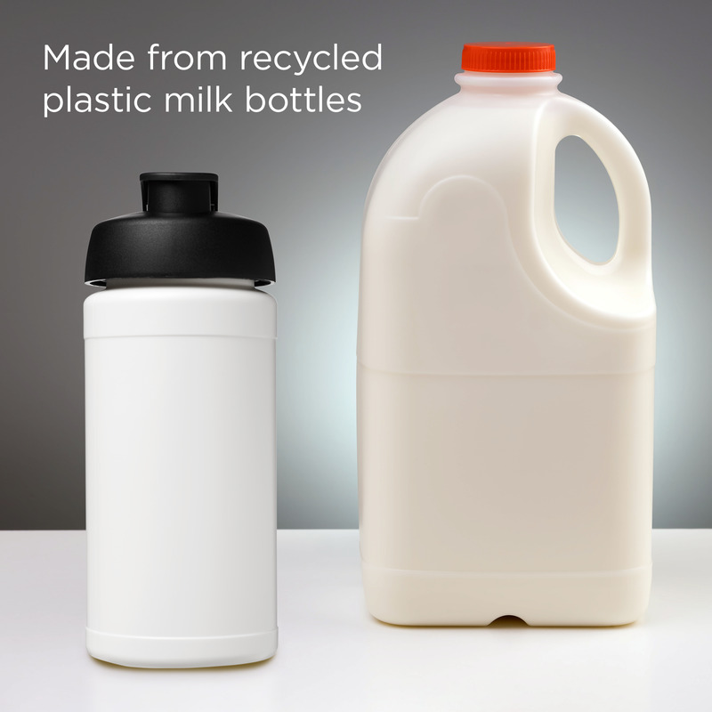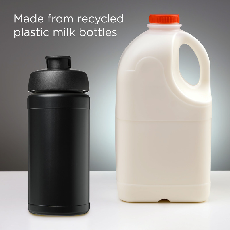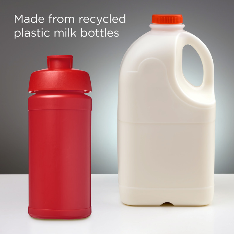• This single-wall sport bottle has a 500 ml capacity, made from recycled plastic milk bottles.