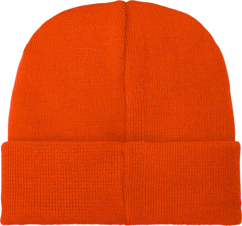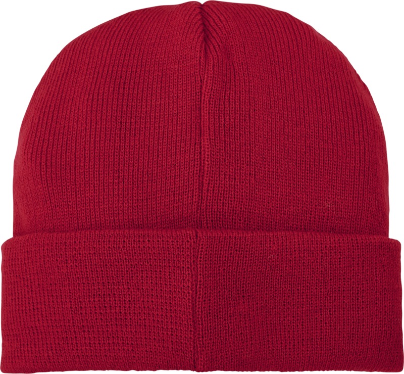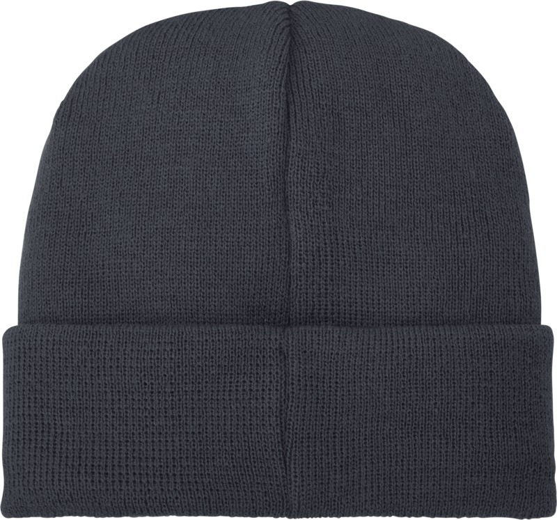 • Made from 1x1 rib knit acrylic, the beanie is warm and durable.