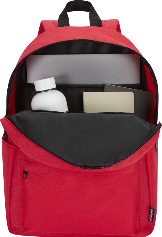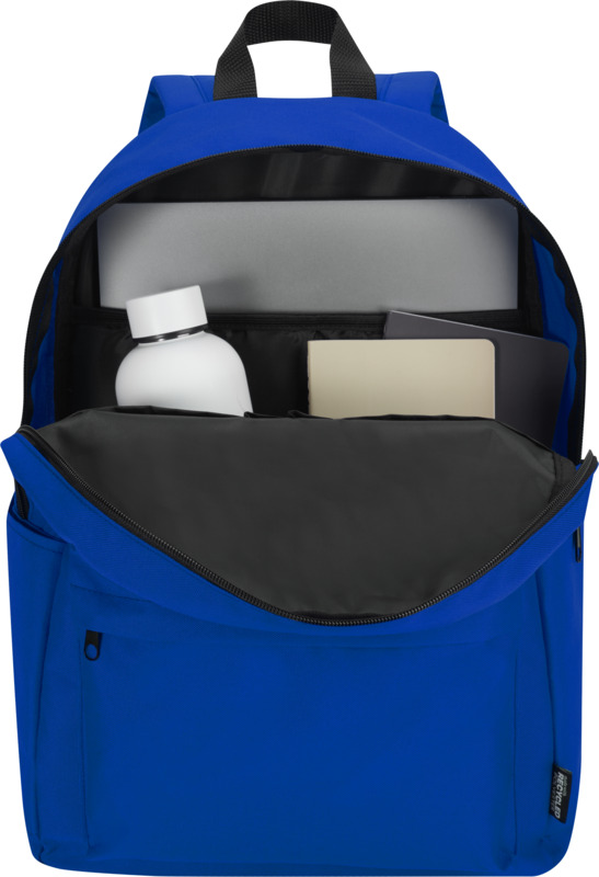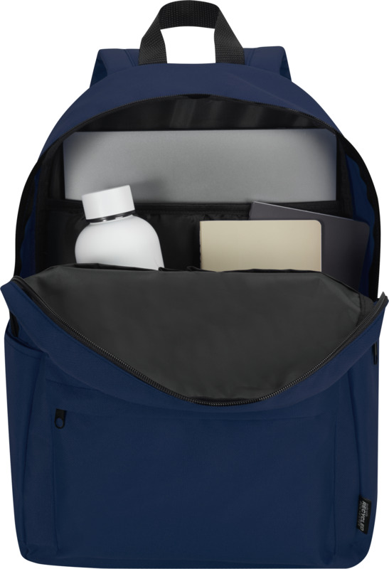 This Byron 14″ GRS recycled city laptop backpack is a practical item for daily commutes. It has 16 litres of storage, including a padded 14-inch laptop sleeve. Made from water-repellent recycled polyester, it is ideal for promotional giveaways.