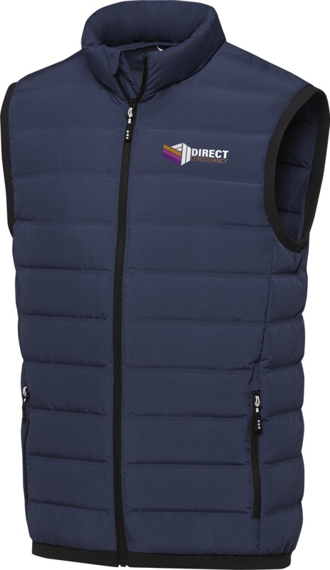 This Caltha men’s bodywarmer provides warmth and comfort for promotional campaigns. It uses RDS certified recycled down and feathers for insulation. Made from 750T woven polyester with a modern matte finish and heat seal quilting, it is ideal for brand awareness.