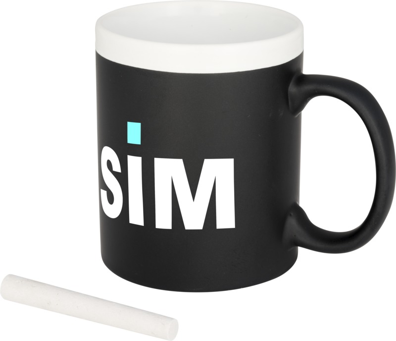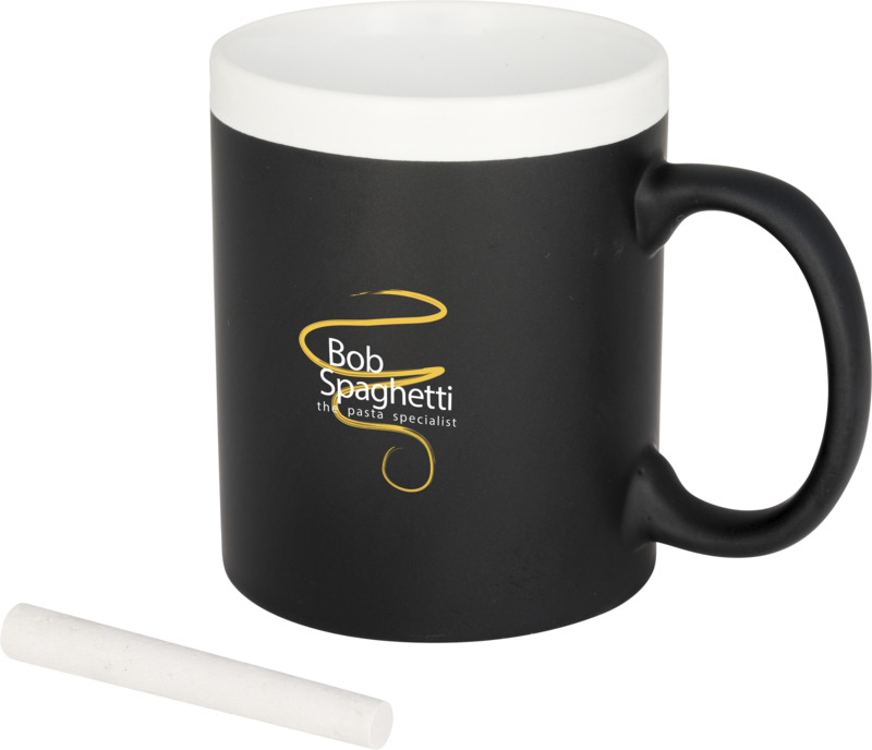 Offer a distinctive promotional item with the Chalk-write 330 ml ceramic mug, allowing recipients to personalise their drinkware.