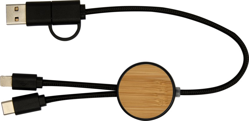 - The cable is made from recycled plastic and features responsibly sourced bamboo accents.