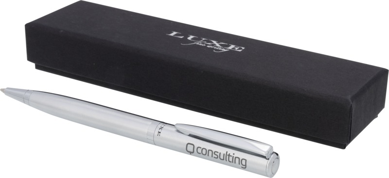 - This lightweight ballpoint pen is available in two finishes: matt brushed gold with gold coloured accents or matt brushed silver with chrome coloured accents.