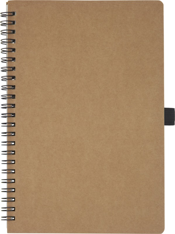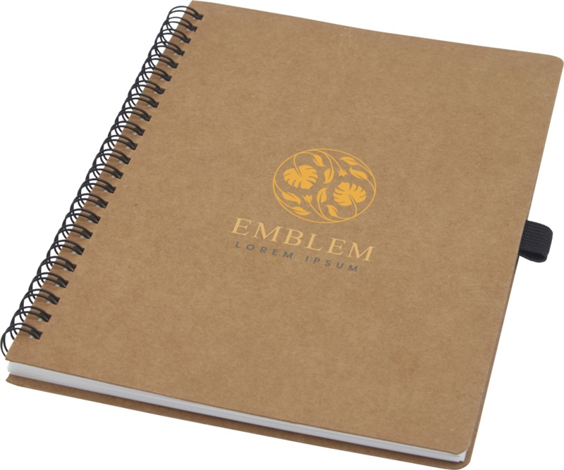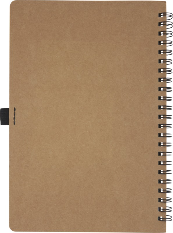 • It is an A5-size notebook with a cover made from recycled cardboard.
