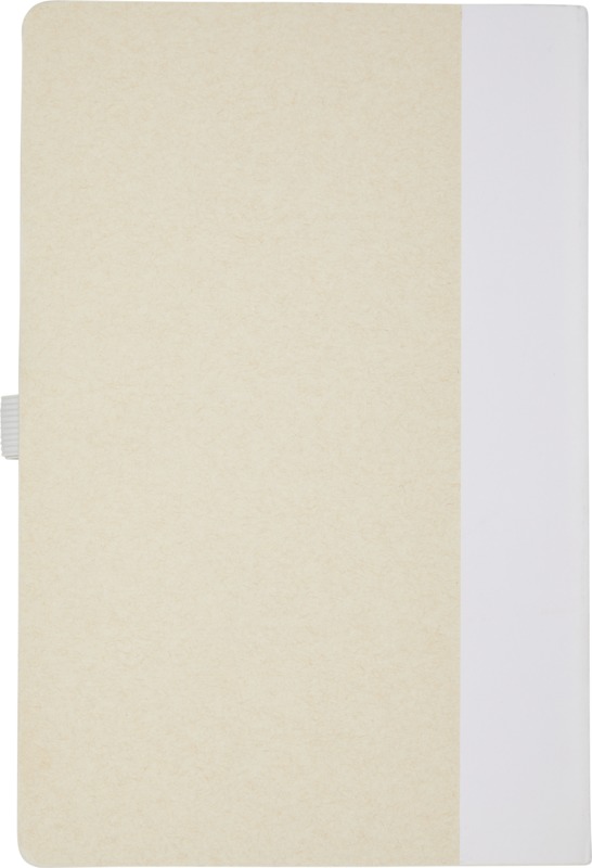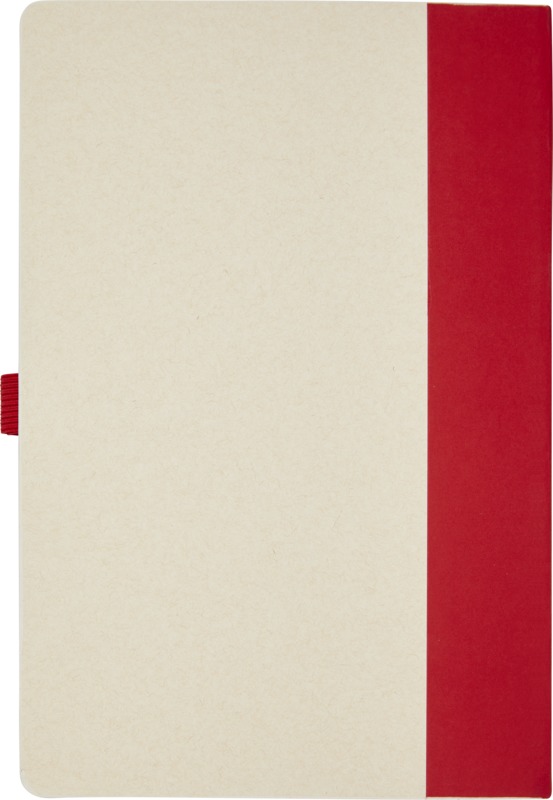 • The A5 notebook features 80 lined sheets (80 g/m²) made from up to 70% recycled milk cartons, a coloured paper spinal, and a pen loop.