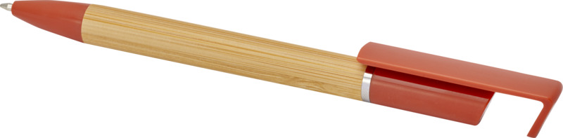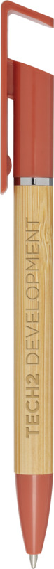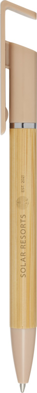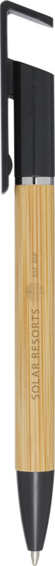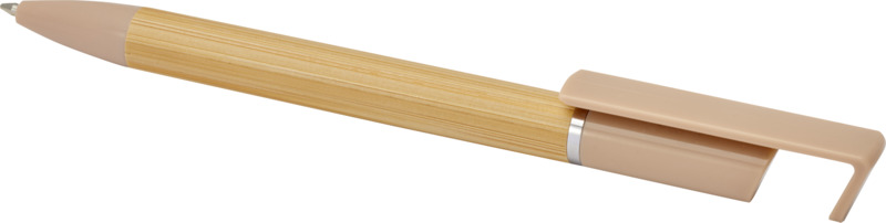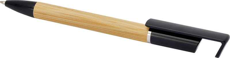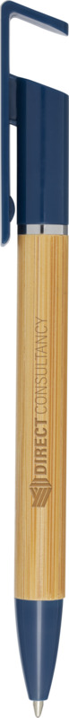 This Delfina pen offers dual use, functioning as a smooth 1.0mm blue ink ballpoint and a handy phone stand. Made with a bamboo barrel and recycled plastic parts, it is a practical item for any promotional campaign.