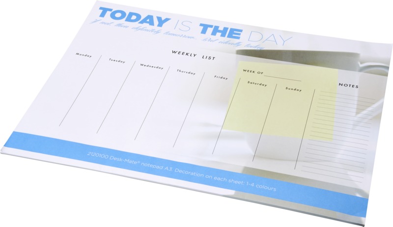 This Desk-Mate® A3 notepad offers a practical item for general promotional activities and daily office use.