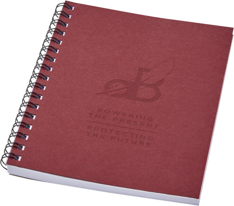This Desk-Mate® A6 spiral notebook keeps your brand visible while providing a useful place for notes. It features 50 sheets of 80 g/m2 recycled paper and an A6 coloured card cover for easy portability. A practical item for corporate gifting.