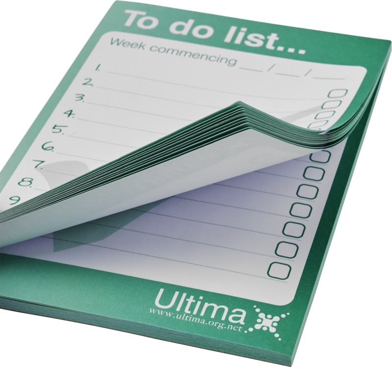 Keep your brand visible daily with the Desk-Mate® A6 notepad. Each 80 g/m2 white sheet allows a full colour print of your design. Available in 25, 50, or 100 sheets, this FSC® certified notepad offers practical brand exposure.