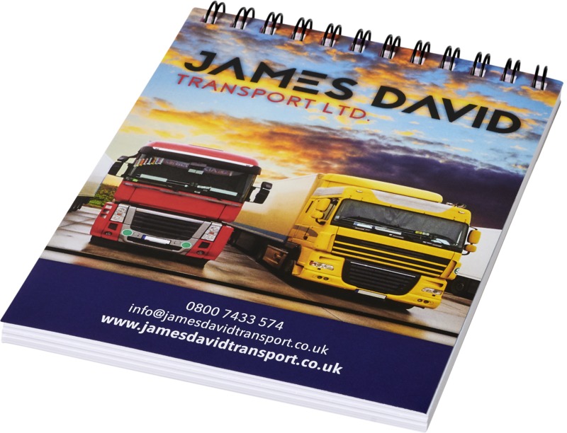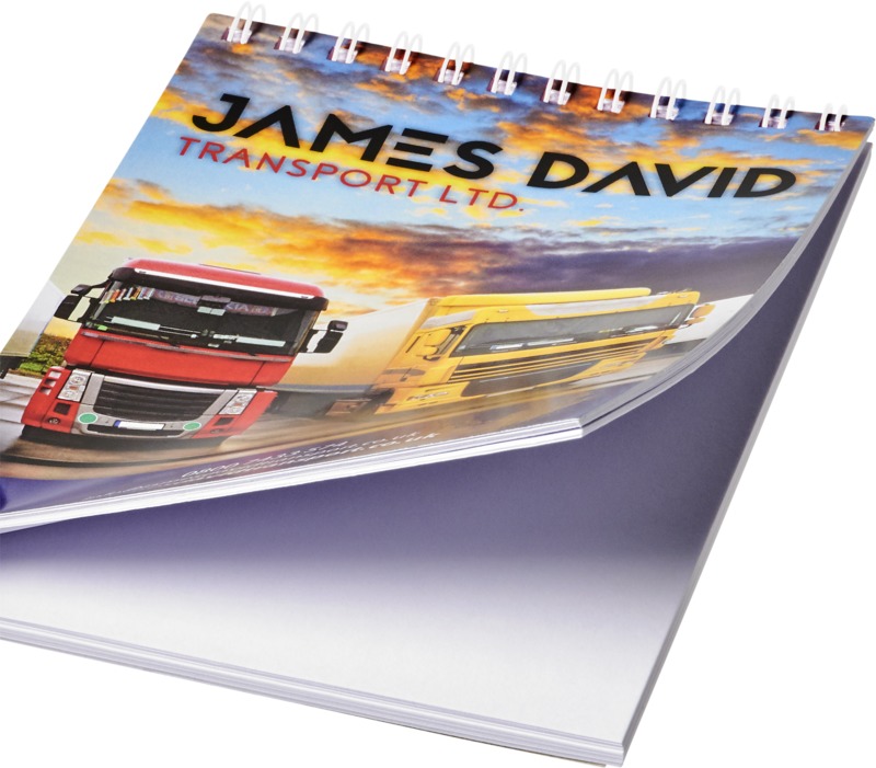 This Desk-Mate® spiral A6 notebook offers a good surface for displaying corporate branding.