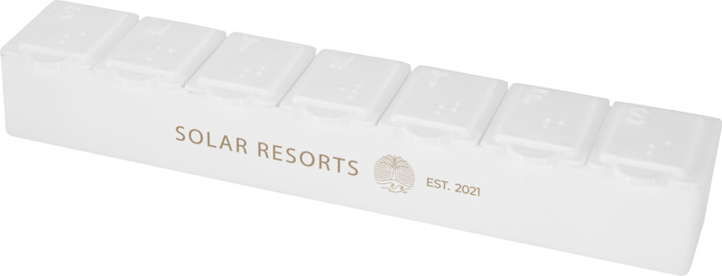 This multi-vitamin organiser offers a useful branding space for your company's promotional efforts.