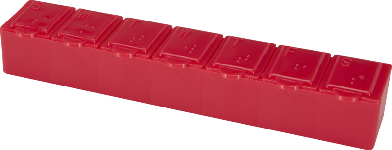 • It features seven separate compartments, clearly marked from Monday to Sunday, to help manage weekly doses.