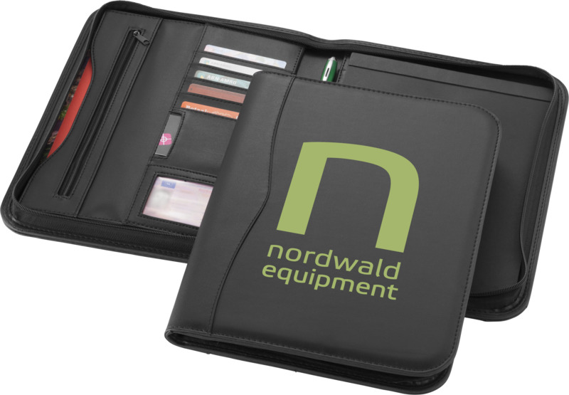 This portfolio offers ample space for branding, making it a good choice for corporate giveaways or staff use.