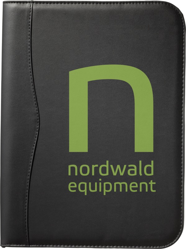 This Ebony A4 zippered portfolio is a practical item for general promotional use, helping to increase brand visibility for any business. It provides a professional way for employees to organise documents and notes.