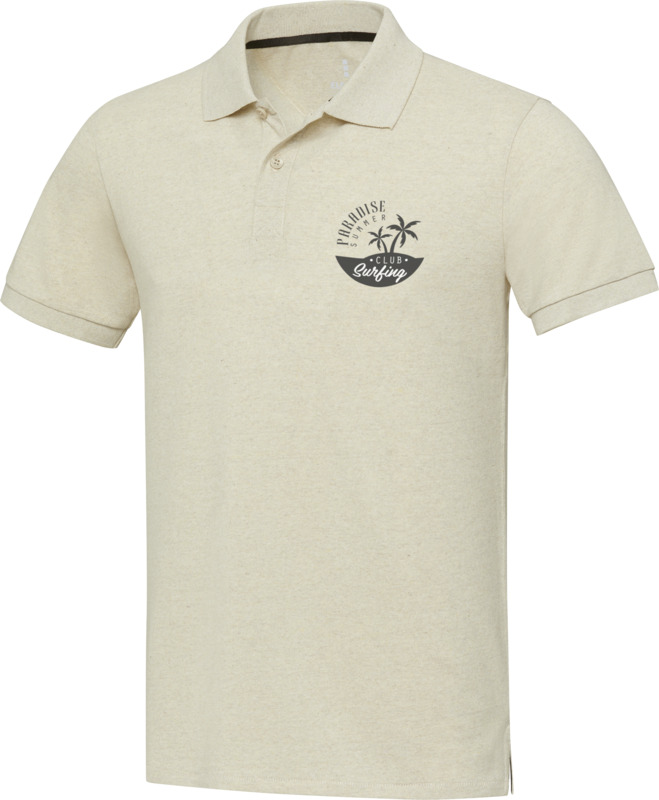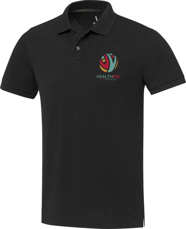 This polo's comfortable design and responsible material choices make it suitable for branding efforts.