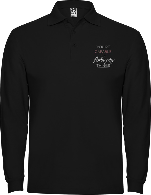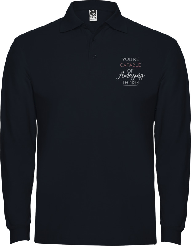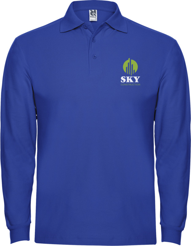 This long sleeve polo is a practical choice for company branding and general promotional activities.