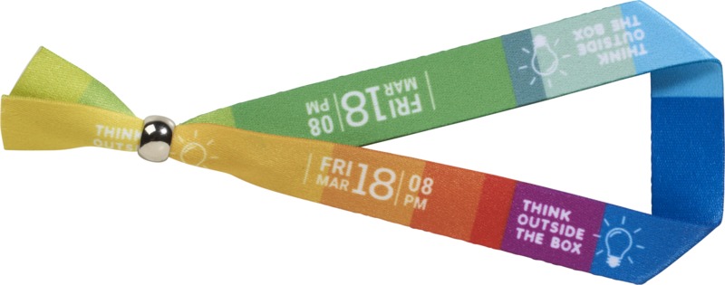 This Evi sublimation festival bracelet provides a practical and visible way to promote your organisation.