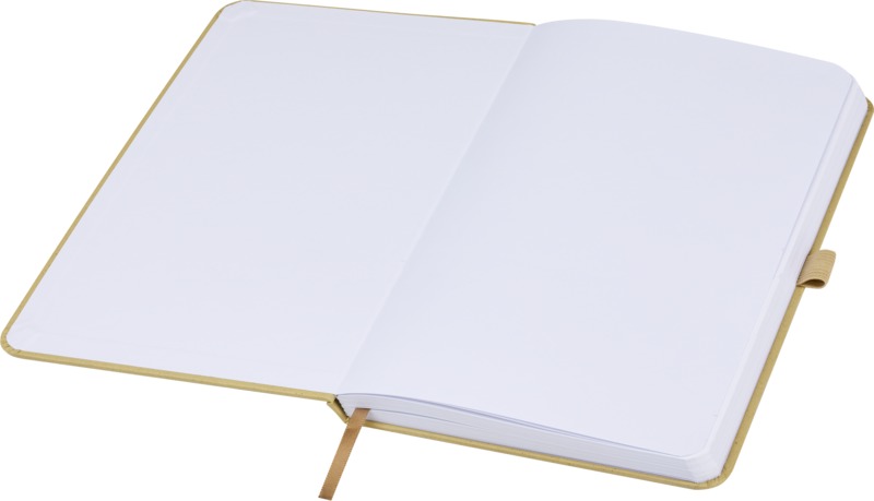 This Fabianna crush paper hard cover notebook offers a practical way for clients and staff to take notes daily. It has a lightweight hard cover made from responsibly sourced materials like coffee, olive, or corn residue. Each notebook includes 80 sheets of 70 g/m² recycled white lined paper, ideal for your promotional campaigns.
