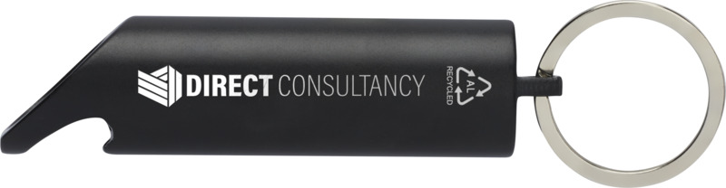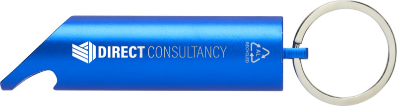 This Flare keylight offers daily convenience with a bright LED light and bottle opener. Made from 63% RCS certified recycled aluminium, it provides a practical and environmentally conscious addition to your keys.