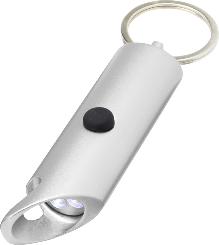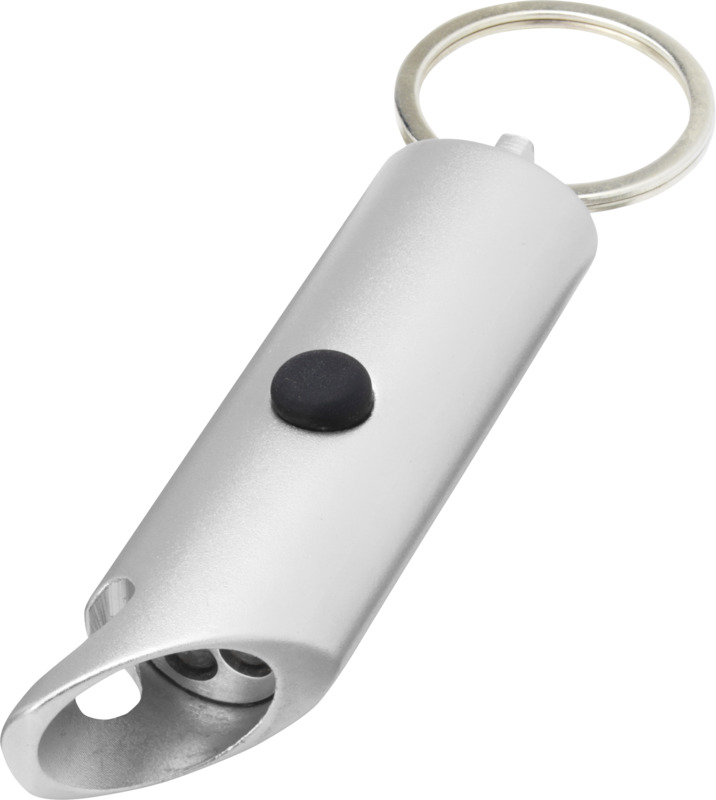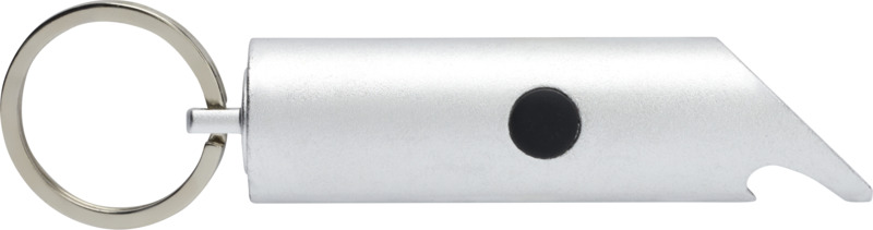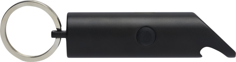 - It functions as a bright LED keylight with an on/off button and includes a handy bottle opener.