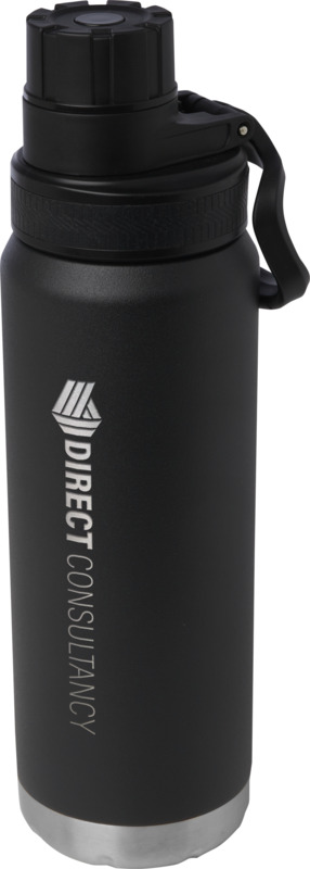 This Fortis 700 ml bottle keeps drinks cold for 48 hours or hot for 12 hours. It is made from RCS certified recycled stainless steel and is safe for carbonated drinks. This bottle is a practical item for promotional branding.