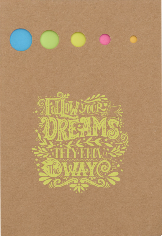 This Freiji sticky notes set is a useful item for general promotional campaigns, offering a practical way for clients to stay organised. It combines a wooden bookmark with various adhesive notes, making it a thoughtful giveaway.