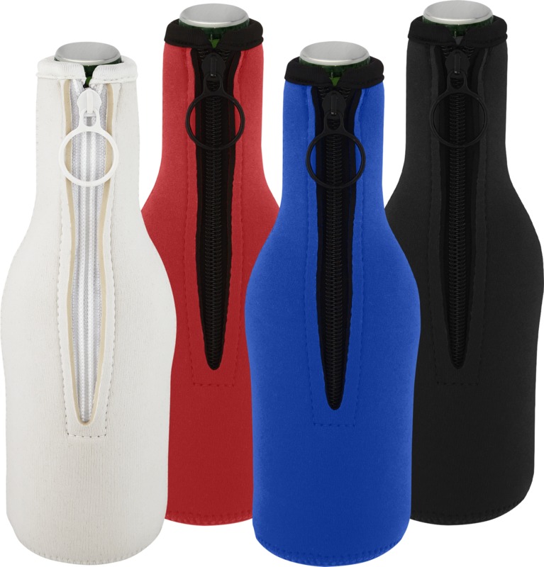 This recycled neoprene bottle sleeve holder is a practical item for general promotional campaigns, designed to keep drinks cool for longer.