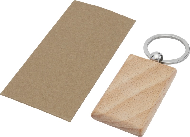 • This rectangular keychain is made from natural beech wood.