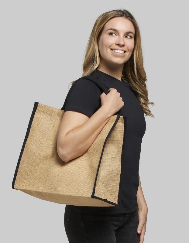 The Harry 25L jute tote bag is a practical choice for promotional giveaways. It offers a 25L capacity main compartment with a hook and loop closure. The distinct coloured edge adds a stylish touch, making it a useful item to showcase your brand.