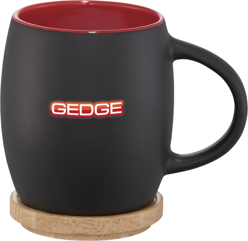This Hearth 400 ml ceramic mug with a wooden coaster is a practical item for general promotional campaigns, offering daily visibility for your brand.
