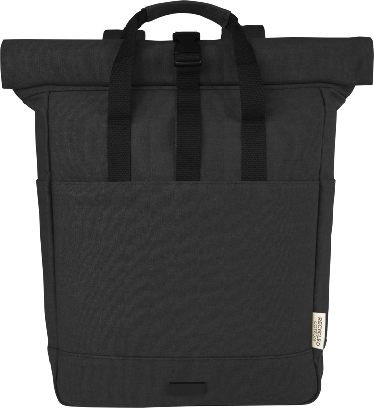 The Joey 15L GRS recycled canvas rolltop backpack is a practical, sustainable choice for brand promotions. It features a padded 15-inch laptop compartment and a secure zippered rolltop opening. This backpack helps represent your brand responsibly.
