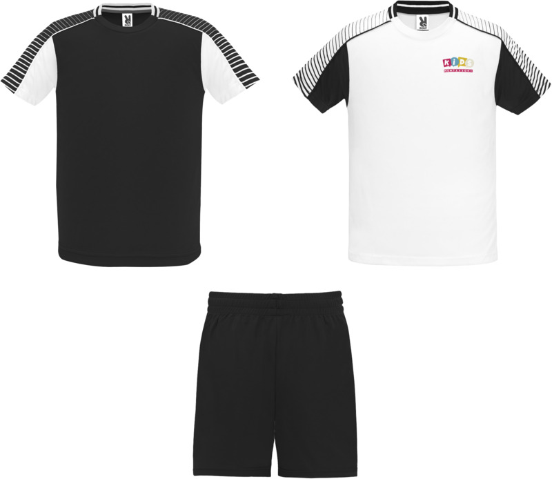 This Juve kids sports set offers a practical choice for promotional campaigns. It includes two breathable, technical fabric t-shirts and one pair of shorts with an elastic waistband. This set is suitable for younger audiences and branding efforts.