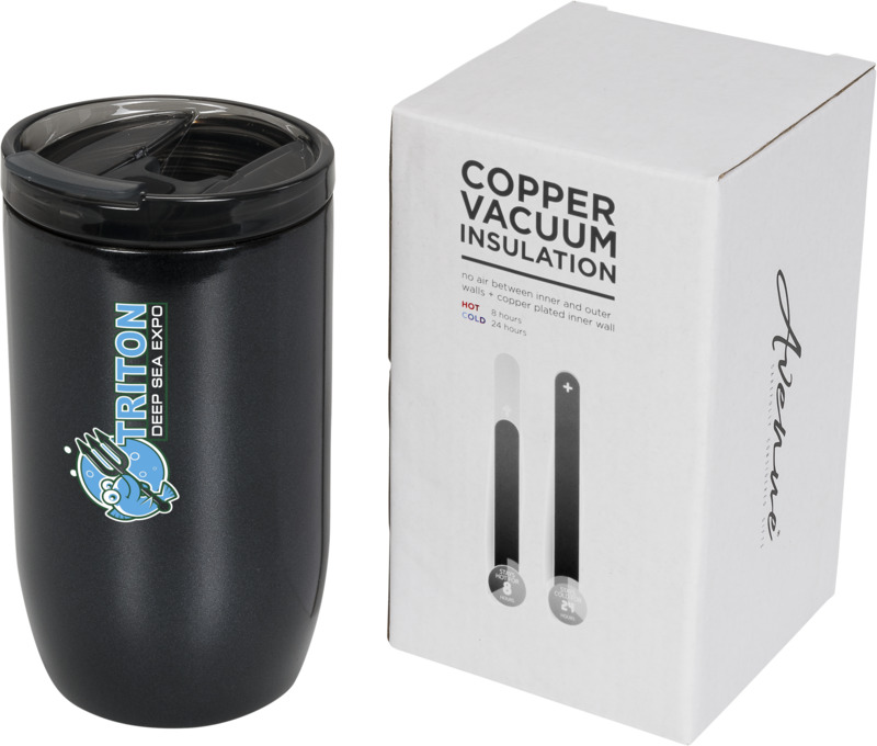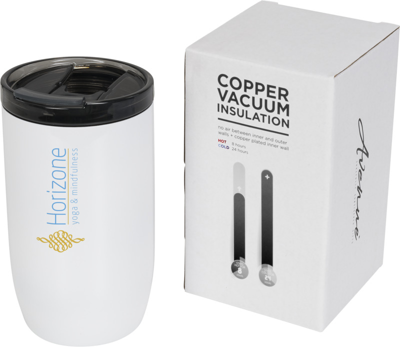 This Lagom 380 ml copper vacuum insulated tumbler is a practical item for general promotional campaigns, offering a useful product for daily use.