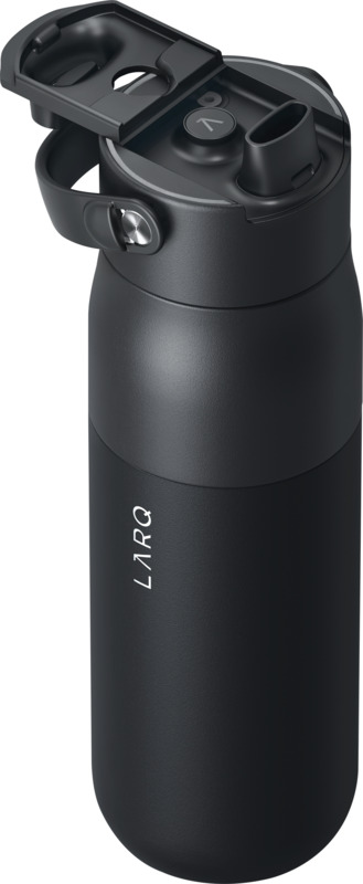Enjoy clean, odour-free water with this 680 ml bottle. Its UV-C LED cap automatically cleans the bottle every two hours, plus a two-stage filtration system improves water quality. This is the LARQ PureVis™ 2.0 water bottle.
