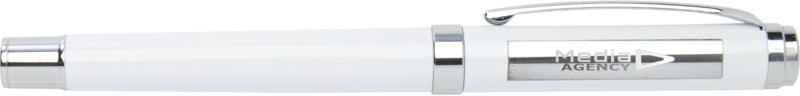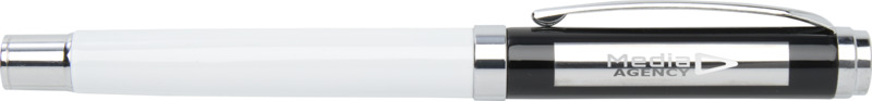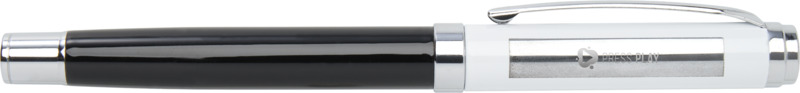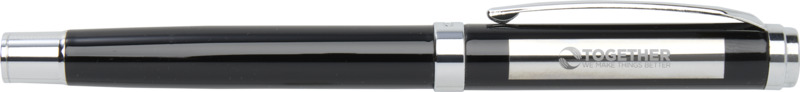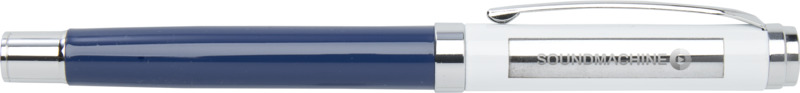 • The rollerball pen features an RCS certified recycled brass upper barrel with a silver chromed finish and a colour spray coated lower barrel. It uses blue ink with a 0.7 mm nib, providing 400 metres of writing length. An extra black ink refill is included.