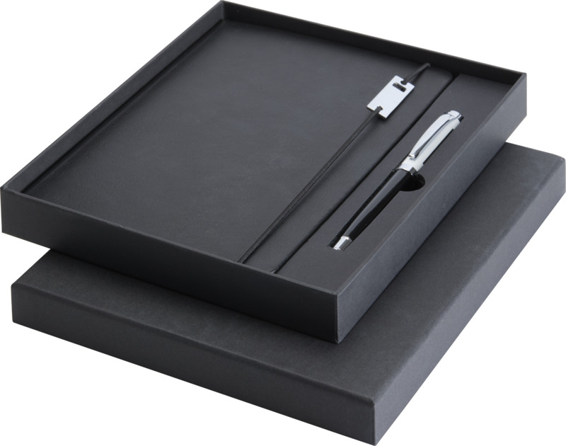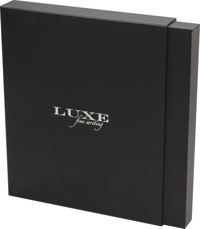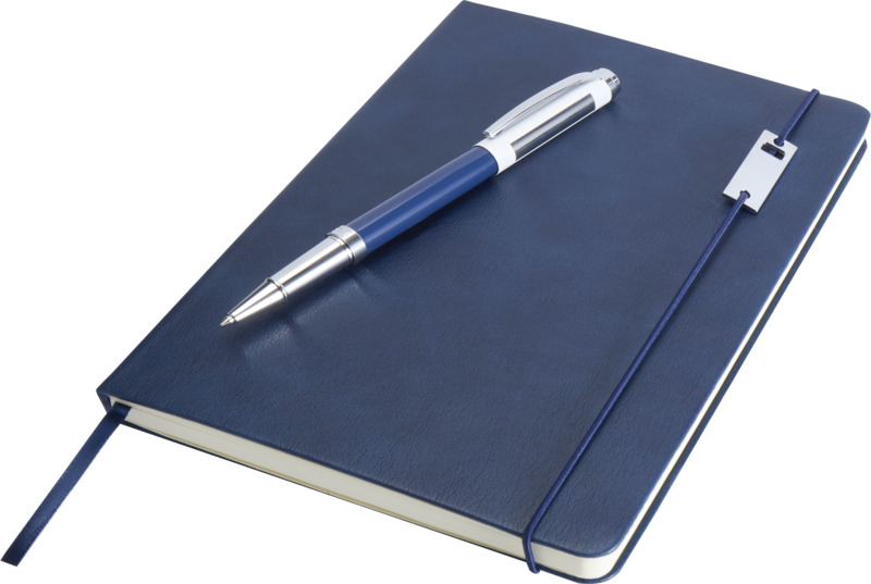 This Legato Elegance A5 notebook and pen set provides a refined option for promotional branding. The notebook contains 80 lined cream pages. The rollerball pen uses blue ink with a 0.7 mm nib and includes an extra black refill, making it suitable for corporate identity.