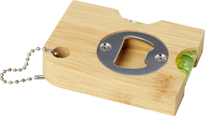 This Levo bamboo bottle opener provides dual use, assisting with DIY tasks and opening drinks. It includes a spirit level and a bottle opener, made from natural bamboo. A practical item for general promotional campaigns.