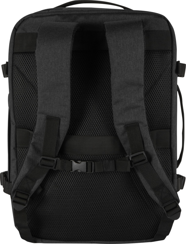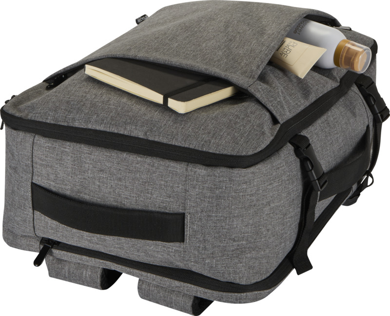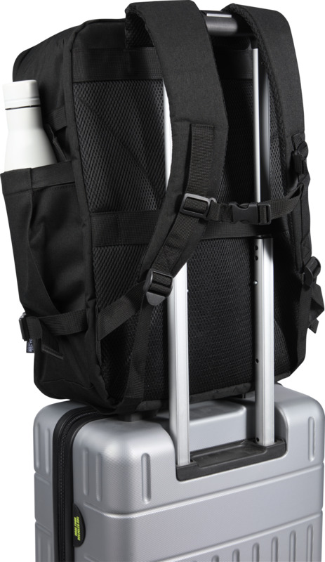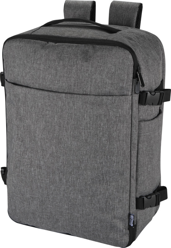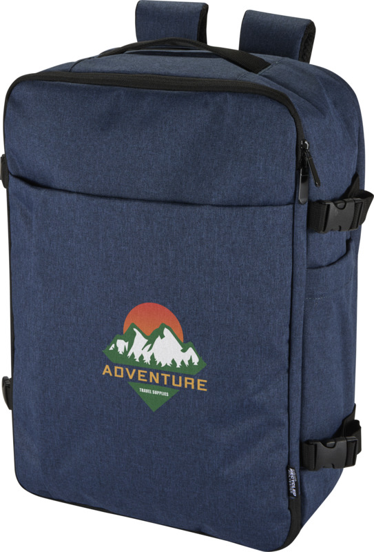This Libra 17" GRS recycled carry-on backpack is a practical choice for general promotional campaigns, offering a useful item for recipients.